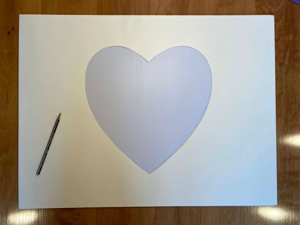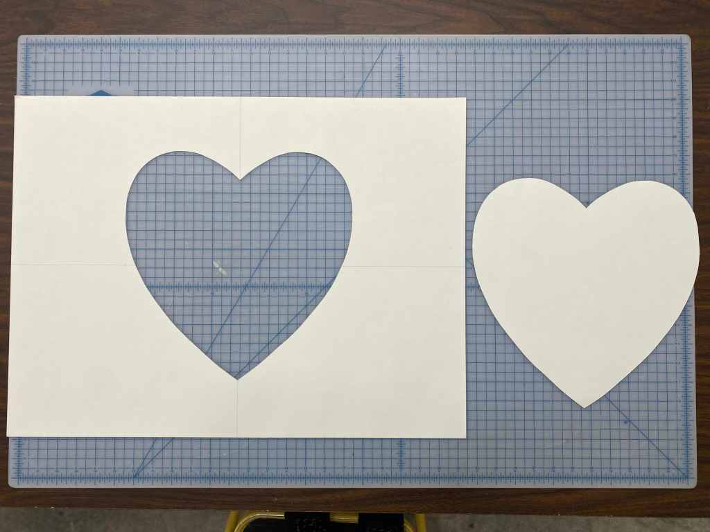 Carefully cut the heart from the folded paper. Remember, you will need both the positive (heart shape) and negative (background shape) parts of the 24 x 18 inch paper.