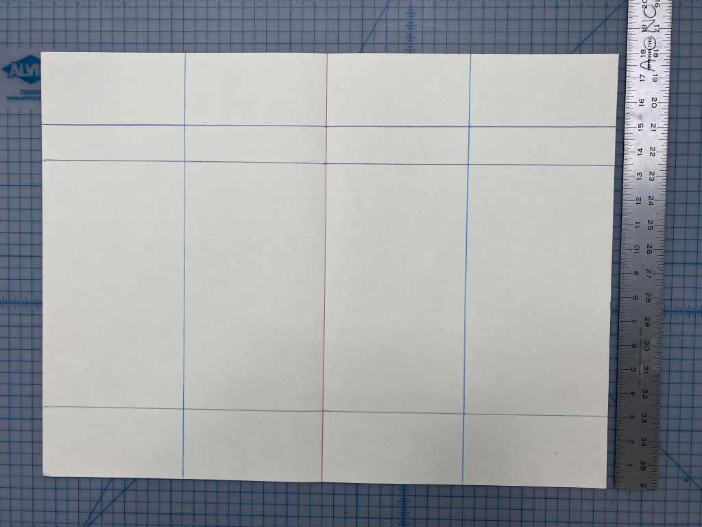 Mark another horizontal line 4.5 inches down from the top edge. This dark blue line marks the center dip in the heart shape.
